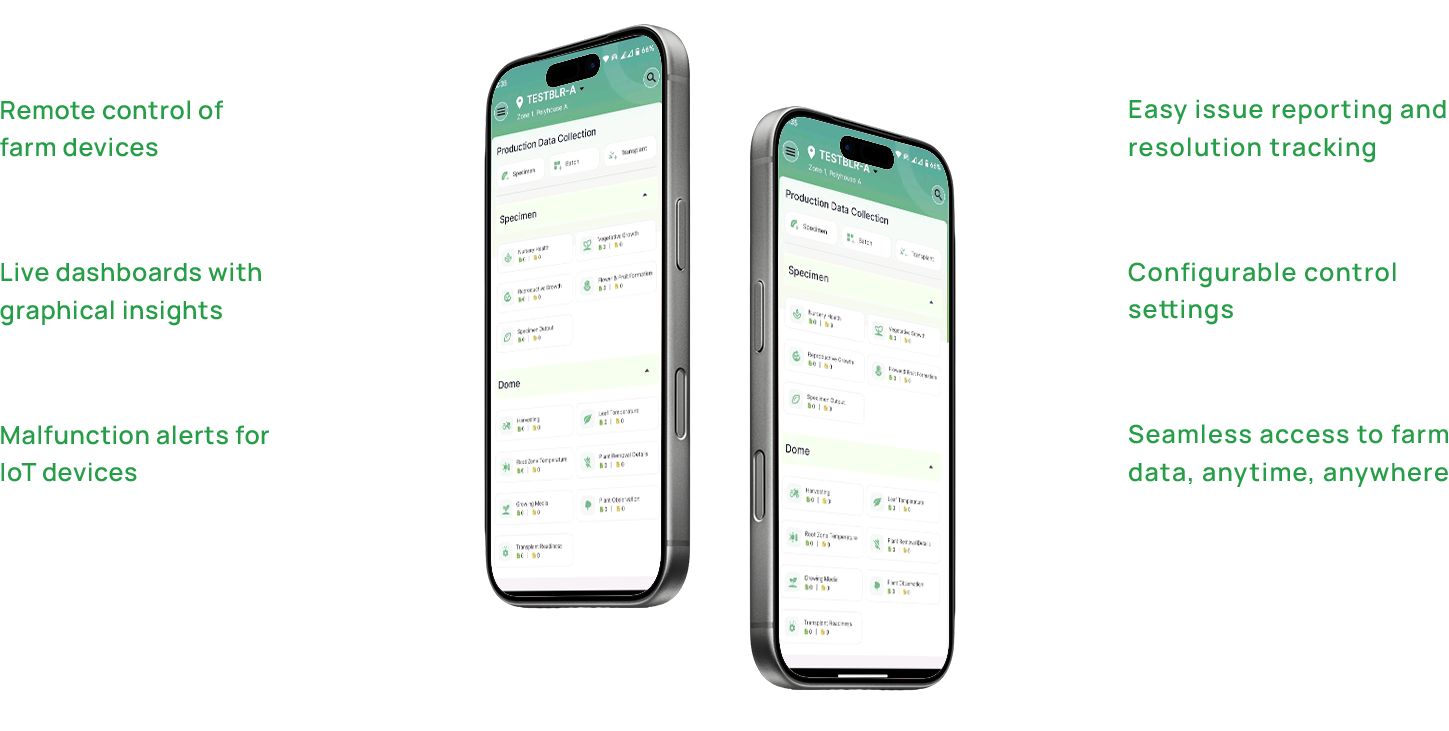 Built-in IoT automation monitors climate, water pH, and nutrients—ensuring precise, data-led farming at scale.